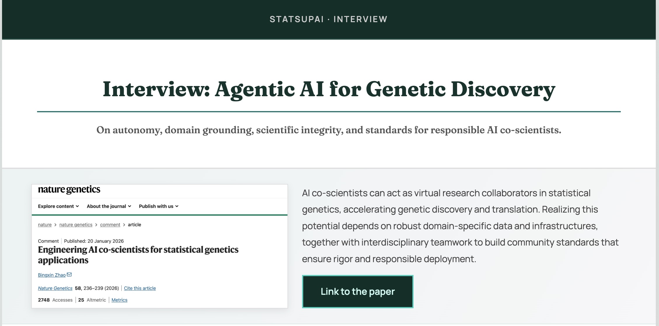 In Conversation with Bingxin Zhao: Agentic AI for Genetic Discovery